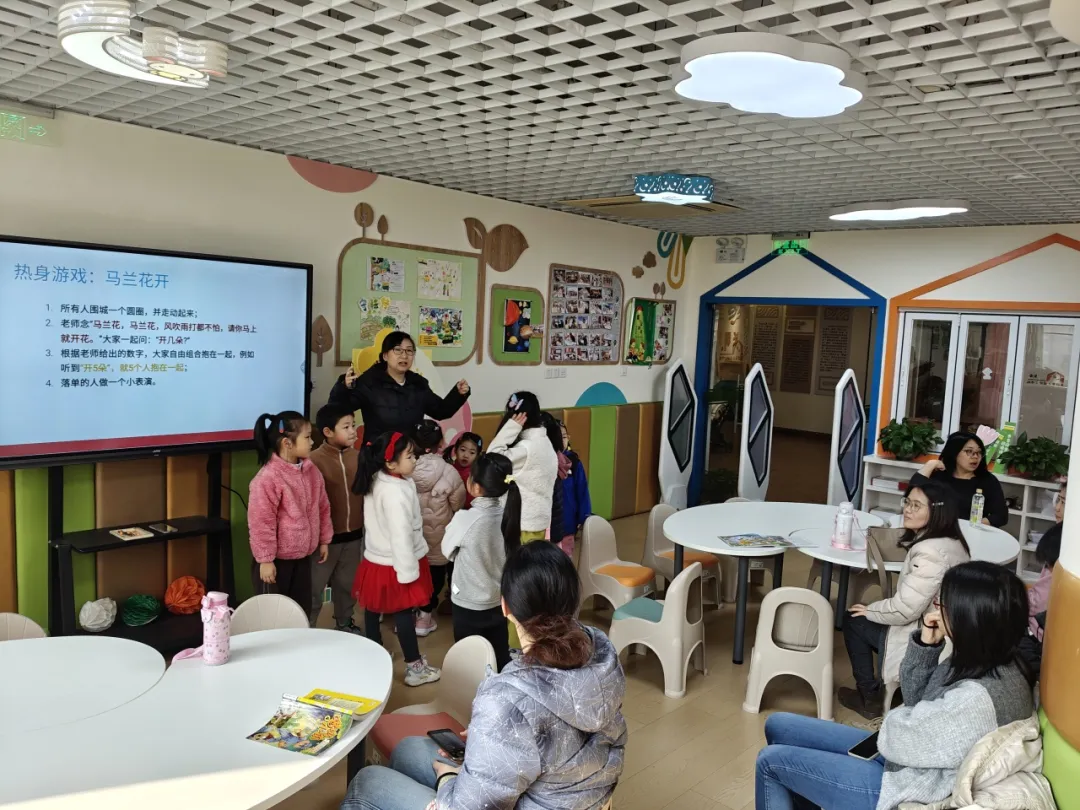 活动从“马兰花开”热身游戏开始,家长与孩子在互动中迅速融入,现场氛围轻松欢快。
