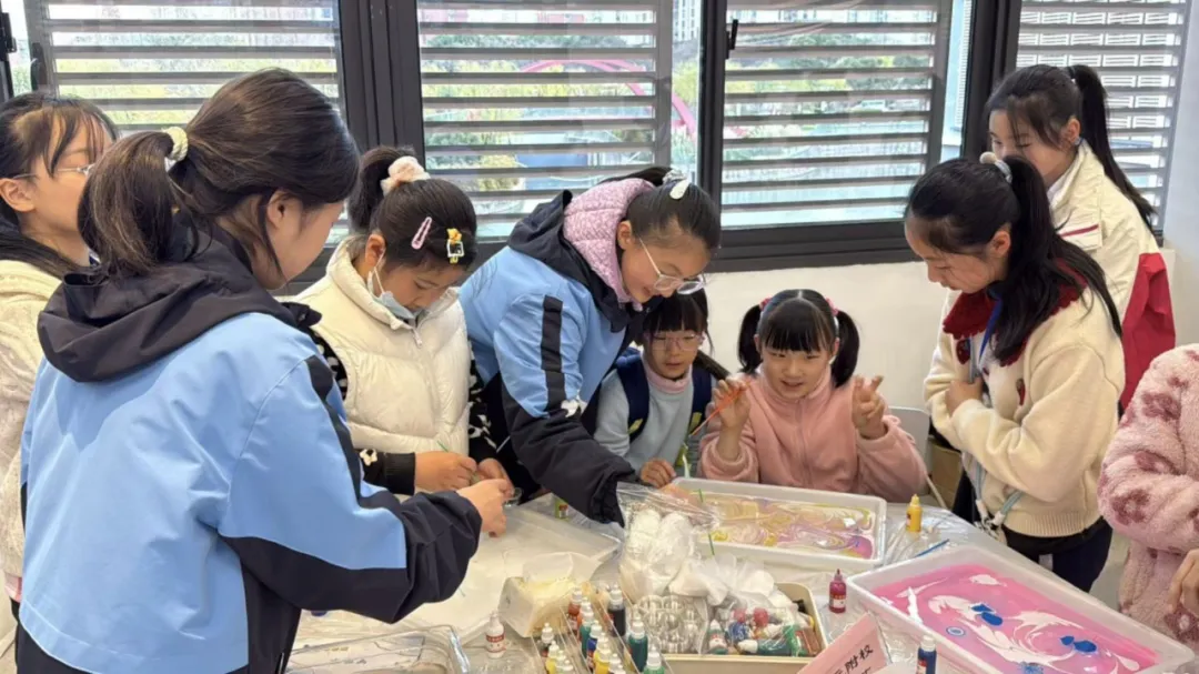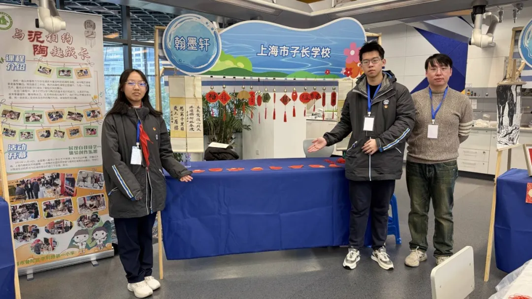 上午9时许,主楼签到处已排起有序长队,学生们带着期待的笑容完成签到,奔赴各自心仪的艺术体验区。1月1日的艺术板块汇聚了8所学校的优质社团资源,现场亮点纷呈:上海市晋元高级中学附属学校的水拓画摊位前,学生们手持工具蘸取颜料,在水面勾勒出斑斓纹样,转瞬化作独一无二的艺术作品;子长学校“翰墨轩”的书画体验区,笔墨飘香,青少年们在老师指导下提笔挥毫,一撇一捺间尽显中华传统文化韵味;平利路第一小学“童心瓷语工坊”的陶艺体验更是备受青睐,学生们亲手揉捏陶泥,在指尖塑造各式造型,感受泥土的温润与创作的快乐。