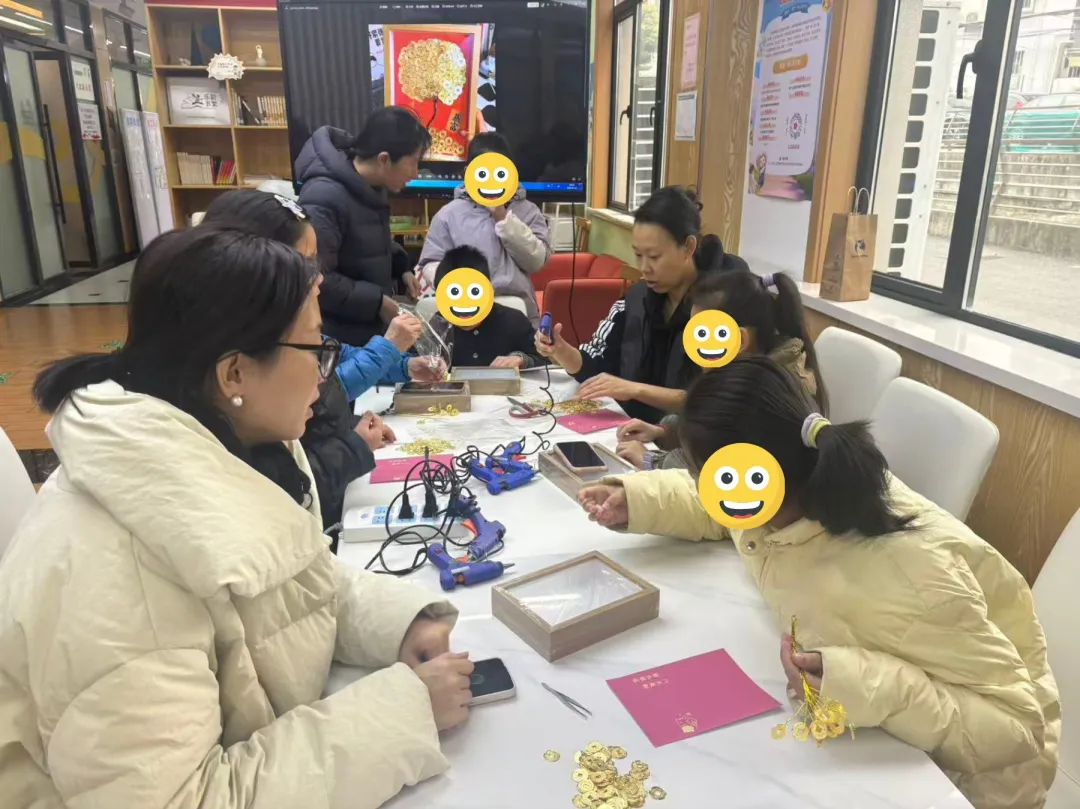 “福树”由亲子共同协作,将红绳、金饰、绿枝与美好的祝愿缠绕在一起,制作出一棵棵寓意吉祥的“爱心树”。现场充满了专注的神情与协作的温馨,每一片叶子的粘贴、每一条丝带的系结,不仅锻炼了孩子们的动手能力,更是在亲子互动中种下了对爱与希望的期盼。