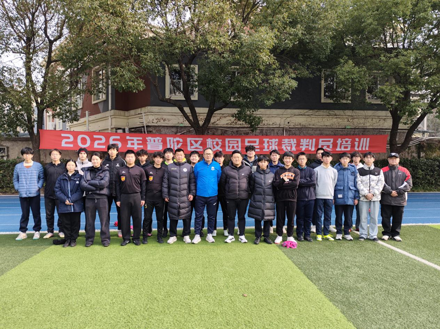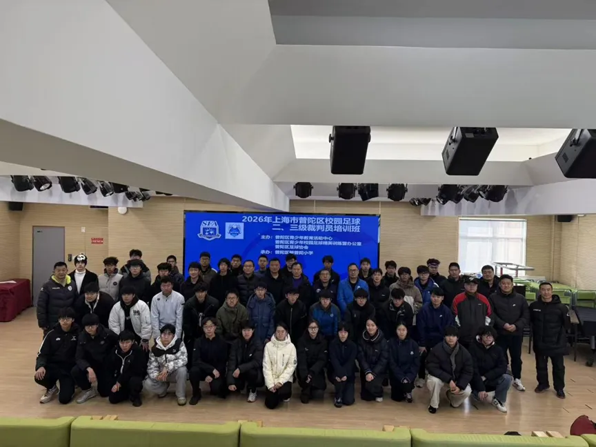 为深入贯彻《中国足球改革发展总体方案》《关于加快发展青少年校园足球的实施意见》等文件精神,进一步推动校园足球实现高质量发展,激发青少年对足球裁判事业的热爱,全面提升校园足球裁判的业务能力与综合素养,夯实普陀区足球裁判后备人才基础,于2026年2月1日至2日,普陀区青少年校园足球精英训练营联合普陀区足球协会,在新普陀小学东校成功举办了2026年上海市普陀区校园足球国家二级、三级裁判员培训班。本次培训获得全区各中学学生的积极响应,50名学员踊跃参加培训。在国家级专业讲师的精心指导下,学员们以饱满的热情投入学习,系统地提升了执裁理论与实践技能,为普陀区足球裁判队伍增添了充满活力的新生力量。