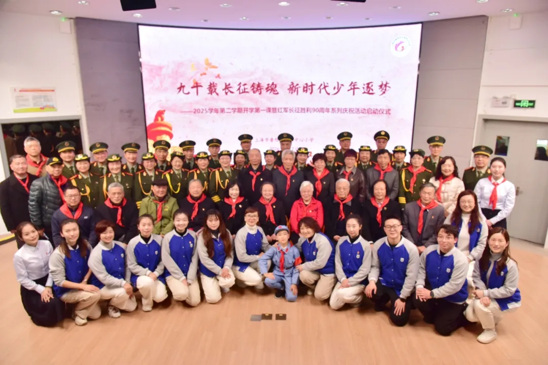 新学期伊始,学校以“开学第一课”为载体,隆重举办2025学年第二学期开学典礼暨红军长征胜利90周年系列庆祝活动启动仪式,特邀市、区关工委领导,上海新四军历史研究会六师分会东进文工团、革命先辈后代等莅临指导,让全校学子在沉浸式的红色体验中接受精神洗礼,从长征精神中汲取奋进力量。本次活动以“九十载长征铸魂 新时代少年逐梦”为主题,融红色展演、仪式表彰、故事宣讲于一体,为全体师生呈现了一堂厚重而生动的思政大课。