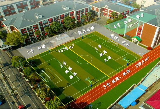 对于拥有28个教学班近千名学生的洵阳路小学而言,1800平方米的操场要保障近千名学生每天的体育课与课外锻炼需求,略显局促。然而,正是这份有限的空间,催生出一场关于体育教育的“无限”创新。学校用“精打细算”的空间规划和“上天入地”的立体扩容,让小操场承载起了大体育。