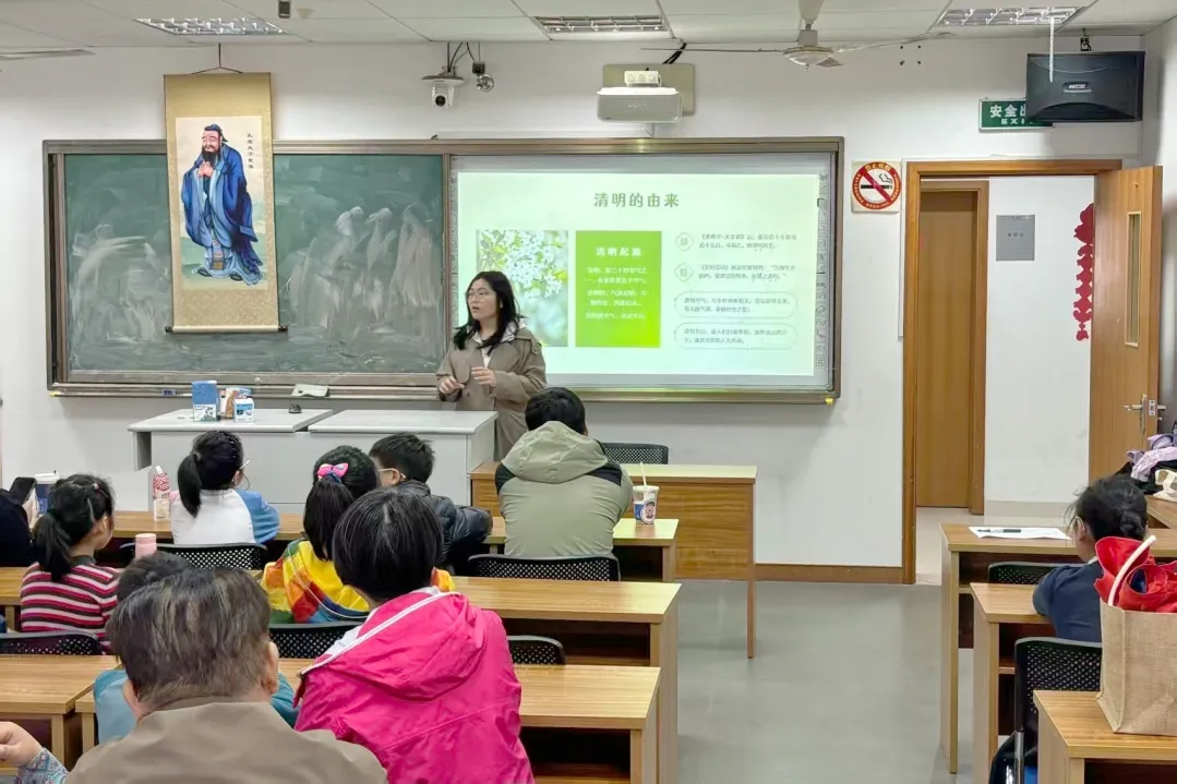 活动伊始,工作人员以生动易懂的语言,向亲子家庭科普清明的由来与文化内涵,讲解其从节气到传统节日的演变,介绍缅怀英烈、扫墓祭祖等传统文化习俗,以及青团、子推燕等特色食俗,让孩子们在聆听中了解传统节日的魅力,厚植文化自信。