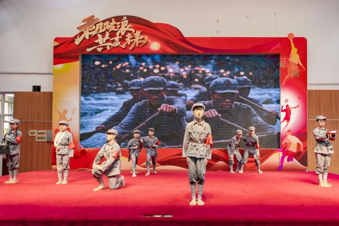 仪式上,“时空对话”环节创新引入AI数字人“小金”,带领现场师生穿越历史,沉浸式感受红军浴血奋战、爬雪山、过草地的壮阔征程与革命艰辛。师生带来的情景朗诵《足迹如碑》,以饱含深情的语言,礼赞革命英烈的不朽功勋。