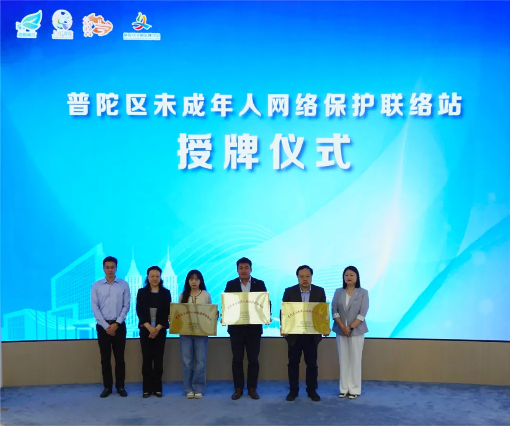 新一批成立普陀区未成年人网络保护联络站的3家企业授牌。