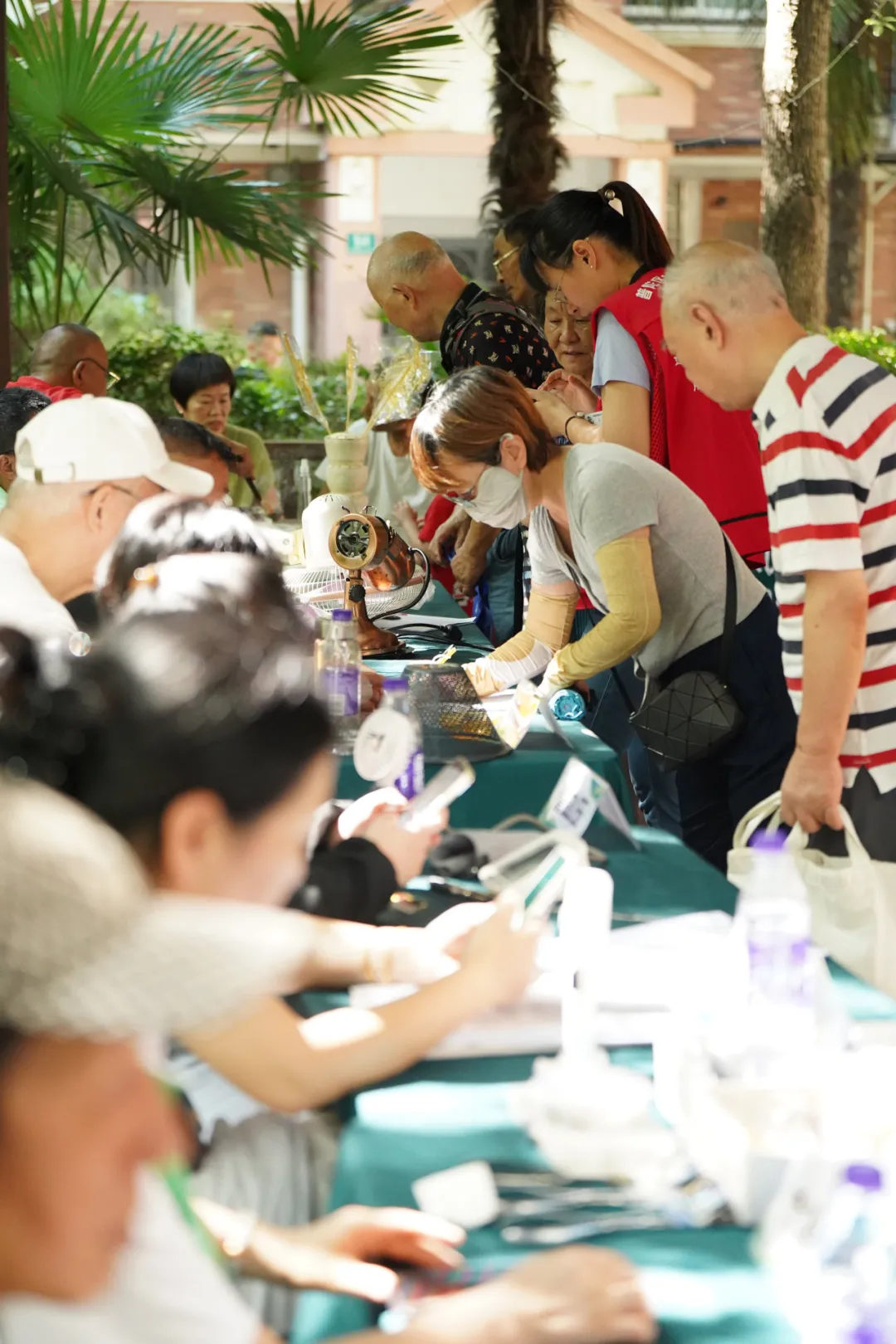 活动现场服务丰富且精准贴合需求,其中磨刀剪摊位人气最旺,是居民最青睐的项目。师傅手持工具,细致打磨每一把刀具,刀刃很快恢复锋利,居民们拿着修好的刀剪,脸上满是满意的笑容。修伞、修鞋师傅手艺娴熟,快速修复破损物件,让旧物“重获新生”;理发、修眼镜、修手表等基础项目有序开展;量血压、测血糖服务方便居民及时了解健康状况,医护人员还耐心讲解健康知识;缝补、油烟机清洗服务专业贴心;非遗糖画摊位凭借独特文化魅力,吸引不少居民驻足观看、体验;蔬菜、水果售卖区摆满新鲜食材,供居民随心挑选。