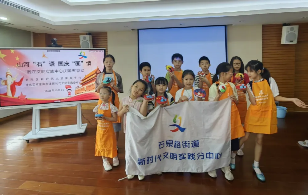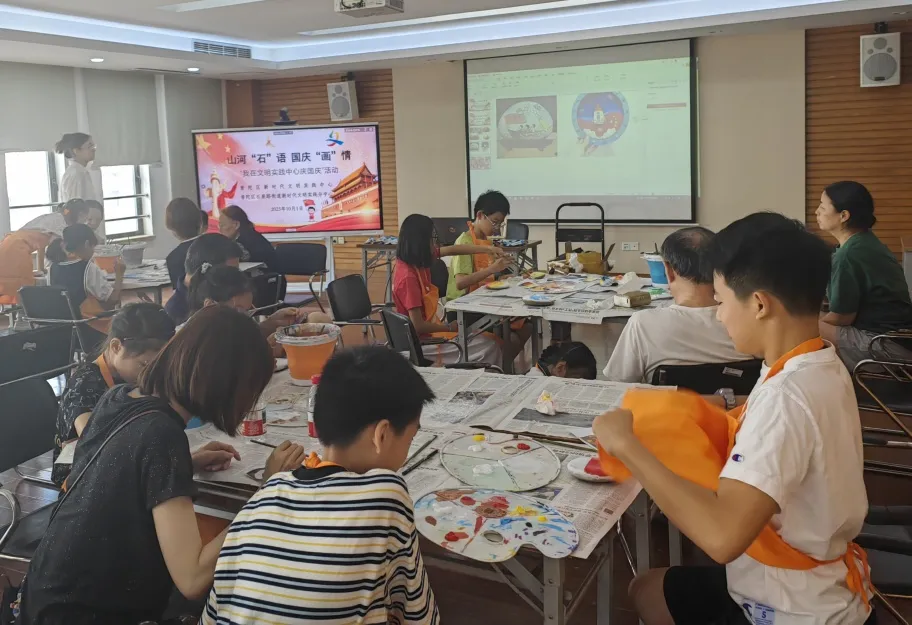 以石为纸,绘山河壮丽;以画寄情,颂家国安康。在国庆节来临之际,普陀区新时代文明实践中心联合石泉路街道新时代文明实践分中心举办了山河“石”语 国庆“画”情——“我在文明实践中心庆国庆”亲子主题活动,亲子家庭们齐聚一堂,在文明实践中心共赴“指尖上的爱国礼赞”。