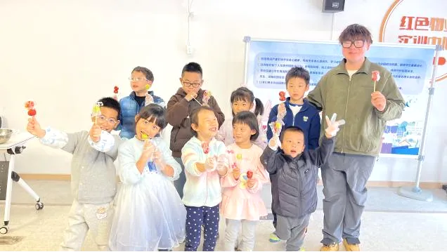 冰糖葫芦制作环节将气氛推向高潮,在家长的协助下,孩子们串起新鲜水果,小心翼翼地熬糖、蘸糖,一串串晶莹剔透、甜脆可口的冰糖葫芦在手中诞生,大家品尝着自己的劳动成果,每一张脸上都洋溢着满足与甜蜜。