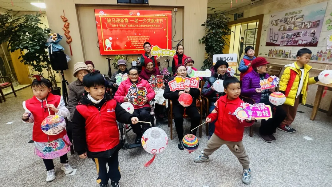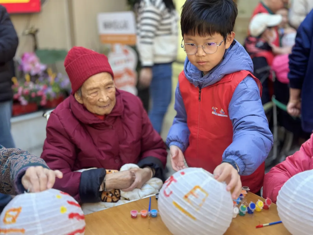 大家还一起动手制作民俗手工“春节灯笼涂鸦”,老少协作,乐趣倍增。另一部分孩子则在青年志愿者的带领下,前往看望行动不便的老人,为他们送上诚挚的新春祝福。