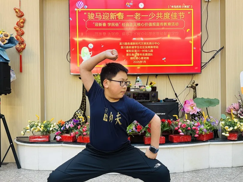 在新春佳节来临之际,宜川路街道新时代文明实践分中心、街道学生社区实践指导站、街道妇联携手宜川一村幼儿园与“爱在身边”青年志愿团队,共同带领宜川“小湾豆”们走进颐和敬老院,开展了一场别开生面的“迎新春 学民俗”社会主义核心价值观宣传教育活动。孩子们与老人们欢聚一堂,共度温馨时光,也为孩子们上了一堂生动而温馨的社会实践课。