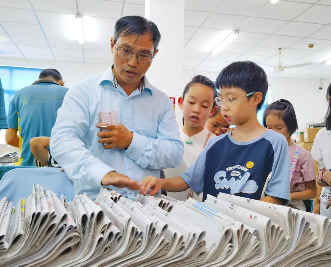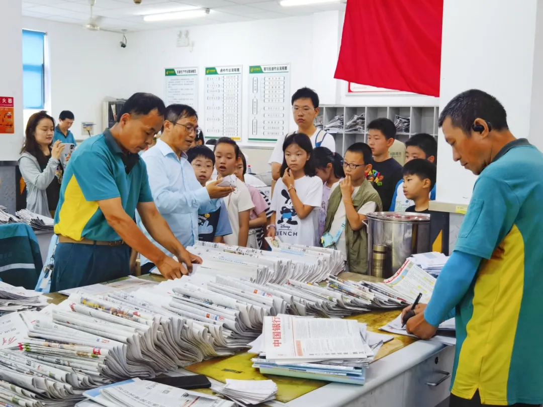 实践体验环节中,同学们兴致高涨:部分手持各式邮戳在明信片上练习盖戳,感受邮政文化魅力;另一部分动手清点当日报纸,学习分类整理方法,在实操中体会“细致严谨”的职业素养。有同学感慨:“原来邮政业务这么丰富,每个环节都离不开认真负责的态度!”