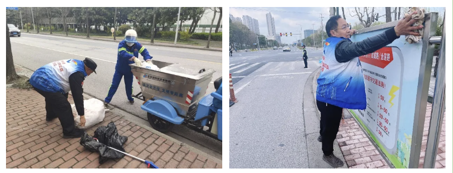针对垃圾乱扔、墙面污损等,镇创城办联合桃浦环卫保洁公司等采取日常管理和集中整治相结合的方式,维护干净整洁、秩序井然的良好状态。