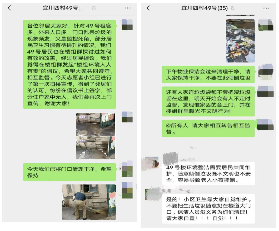 最难的是应对租户流动大,大家索性把“提醒”前置:新租客刚搬来,块长就和志愿者或楼组长主动上门,向租客说明情况,递上那份签满名字的倡议书,笑着说“咱楼里有个护楼公约,可以看一下;我也把你加入楼组群,有事大家能互相帮衬”。把新租客直接拉进“卫生监督+邻里互助”的圈子里,让好习惯随着“人来人往”延续下去。