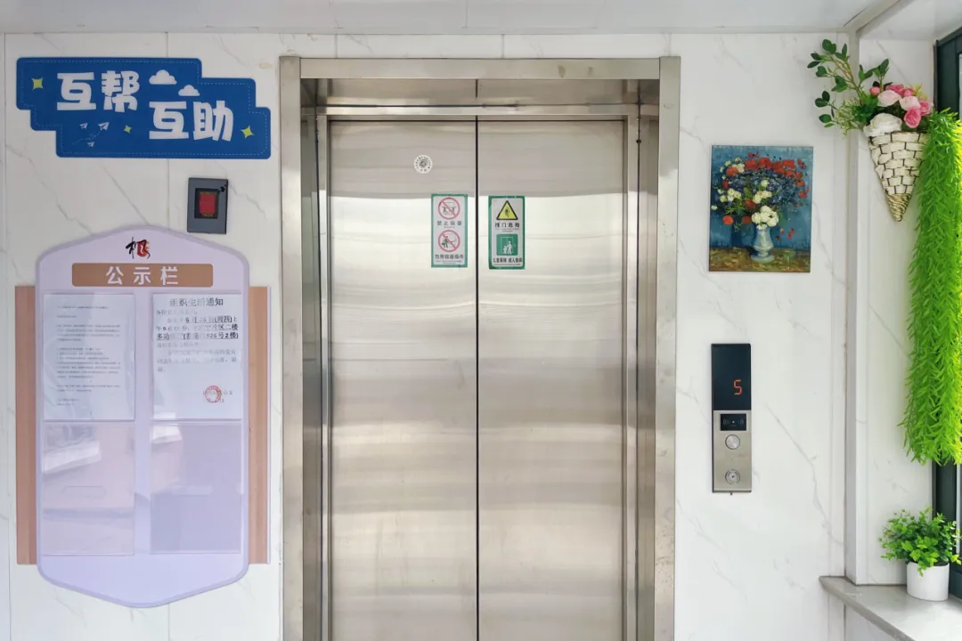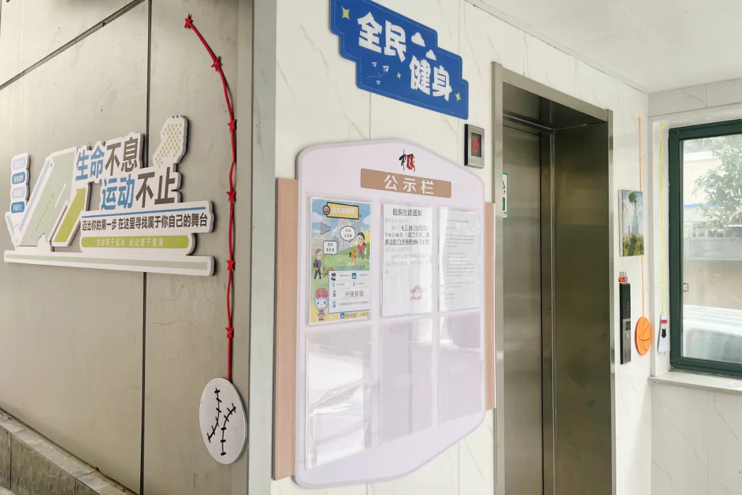 如今,崭新的电梯为居民出行提供了便利,墙面的运动主题插画焕发生机,邻里之间的交流也更加热络,整栋楼洋溢着活力与幸福感。