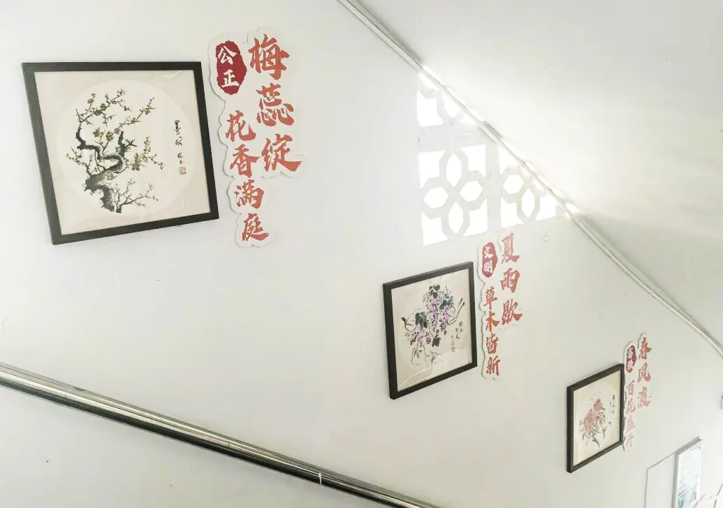 依托石泉路街道提供的资源支持,26号、32号两栋楼的居民除了要求环境整洁,更追求文化暖心,全程主导特色楼组文化建设,走出了一楼一特色的自治之路,让楼道既有颜值,更有温度。