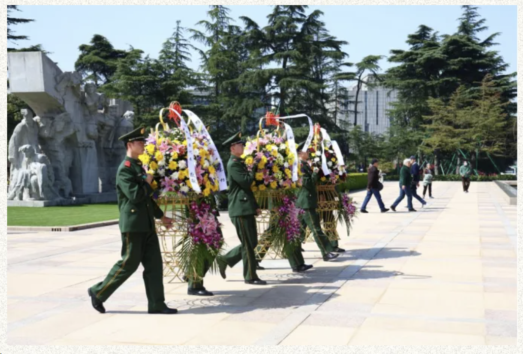 庄严的祭扫仪式上,大家安静肃立在革命烈士纪念碑前,驻区部队官兵代表为革命烈士献上花篮,寄托对革命先辈们的追思。参与仪式的所有人员一同对着纪念碑深深三鞠躬,寄托对先烈英魂的追思和敬意。