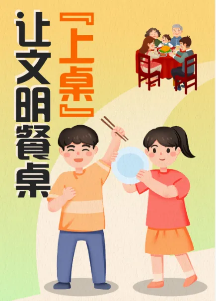 讲究用餐礼仪:用餐时不大声喧哗、不挑食偏食,不敲击碗筷、不浪费食物;对待服务人员礼貌客气,不随意指责、不恶意投诉;餐后主动清理个人餐桌周边卫生,不留下垃圾。