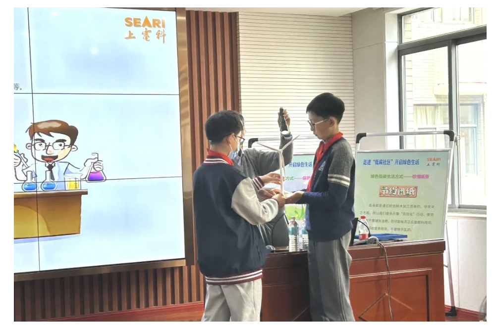 为了让学生更加直观地理解低碳技术的应用场景,专家老师为学生开展了有趣的演示实验和互动提问,直观展示了低碳生活的实践效果,引导学生们深入理解低碳社区的重要性。
