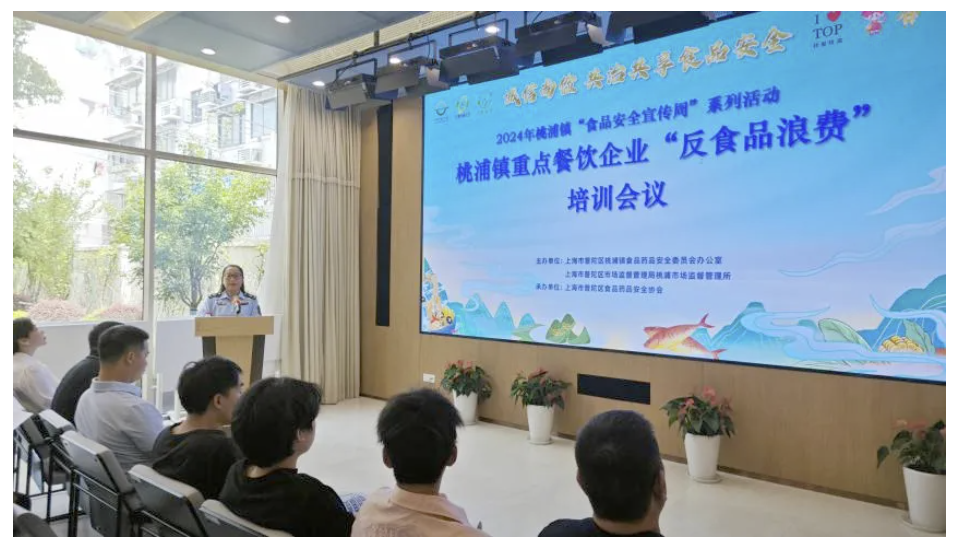 为贯彻《社会餐饮服务单位制止食品浪费管理规范》,引领餐饮企业共倡节俭新风尚,近日,桃浦镇成功举办食品安全宣传周系列活动——重点餐饮企业“反食品浪费”专题培训会议。此次培训由桃浦市场监督管理所、镇食药安办主办,普陀区食品药品安全协会承办,50余家餐饮企业参与。