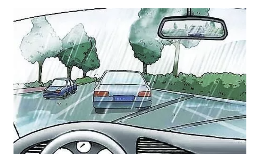 雨中行车时,路面上的雨水与轮胎之间形成“润滑剂”,使汽车的制动性变差,容易产生侧滑。因此,驾驶人要双手平衡握住方向盘,保持直线和低速行驶,需要转弯时,应当缓踩刹车,以防轮胎抱死而造成车辆侧滑。