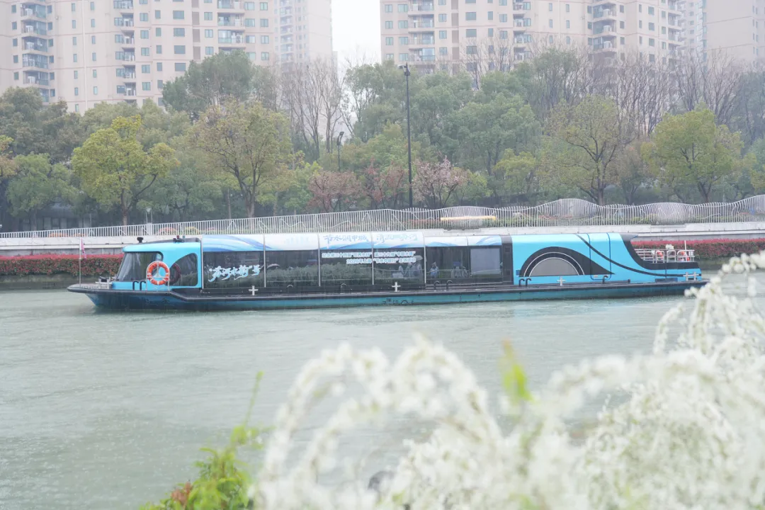 普陀区特色移动式节水宣传点“苏河水韵”号启航仪式率先举行。随着船舵转动,伴随着鸣笛声,这艘节水宣传“移动名片”正式驶离长风湾码头。作为节水宣传与苏河文化融合的创新实践,“苏河水韵”号将穿梭苏河之畔,把节水理念传递至千家万户。