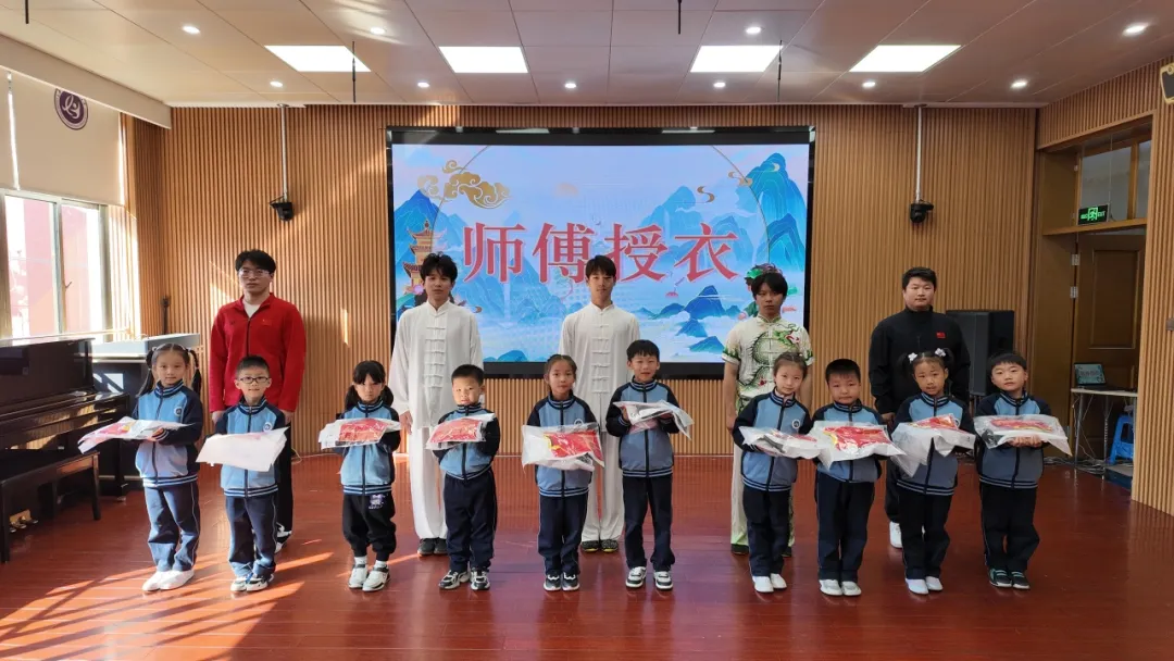为让孩子们领悟“尊师重道”的传统美德,学校为一年级学生精心策划了“承太极之韵,守武德之礼”拜师礼活动,让学生明白“习武先修德,既要练就扎实本领,更要涵养谦逊、坚韧的品格”。整场活动庄重有序,不仅让学生亲身感受传统礼仪的庄重氛围,更在心中种下 “尊师重道、传承文化” 的种子,为后续太极学习奠定思想基础。