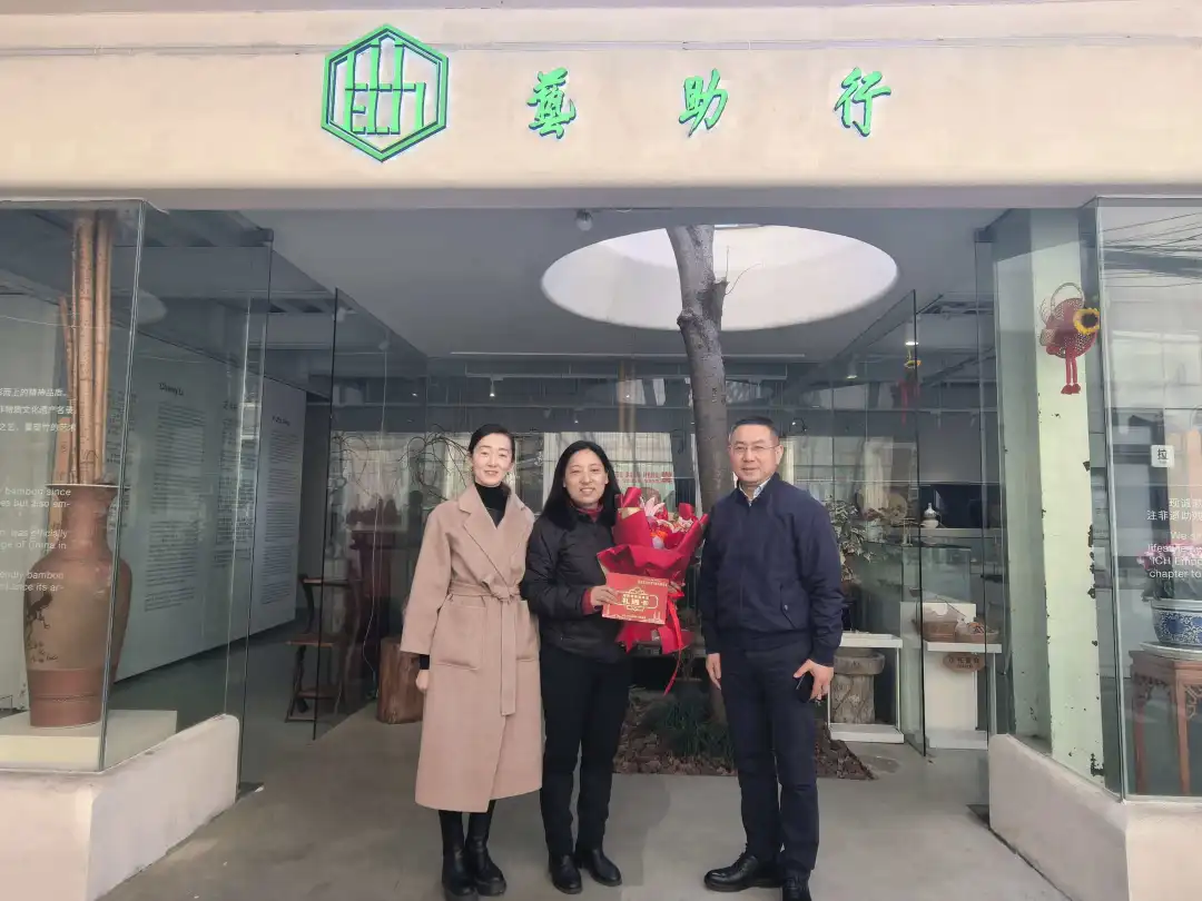 在程丽的竹编工作室,朱小林参观了她的竹编作品,了解她以非遗竹丝编为纽带推动文化传承与公益助残的事迹。程丽作为上海市工艺美术大师、普陀非遗竹丝编传承人,不仅将中国竹编技艺推向世界,更发起“艺助行”非遗助残公益项目,八年来培训300多名残障人士,助力数十人就业,还推动非遗进校园、进社区,助力乡村振兴与民族团结。朱小林对她的贡献给予高度肯定,勉励她继续以艺术为桥传递温暖力量。