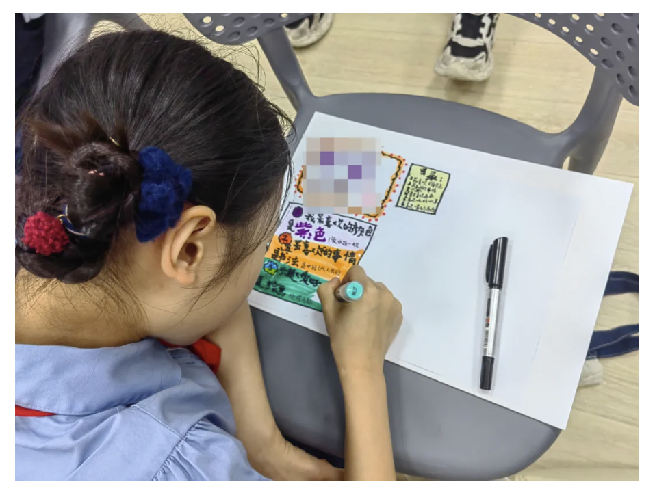 “手绘名牌”小游戏让学员们充分发挥想象力,用画作和色彩介绍自己,大家围坐成圈,有的落笔作画,有的“托腮冥想”,童心童趣跃然纸上。不一会儿,一幅幅色彩斑斓、图案独特手绘名牌呈现在学员手上,学员们逐一分享创作灵感,介绍自身性格和特长,从兴趣爱好、生活习惯到饮食喜好再到学习方式,各种话题在童言童语中畅谈交流,让学员们迅速融入游戏,在自我展示中锻炼了表达能力,提升了自信心。
