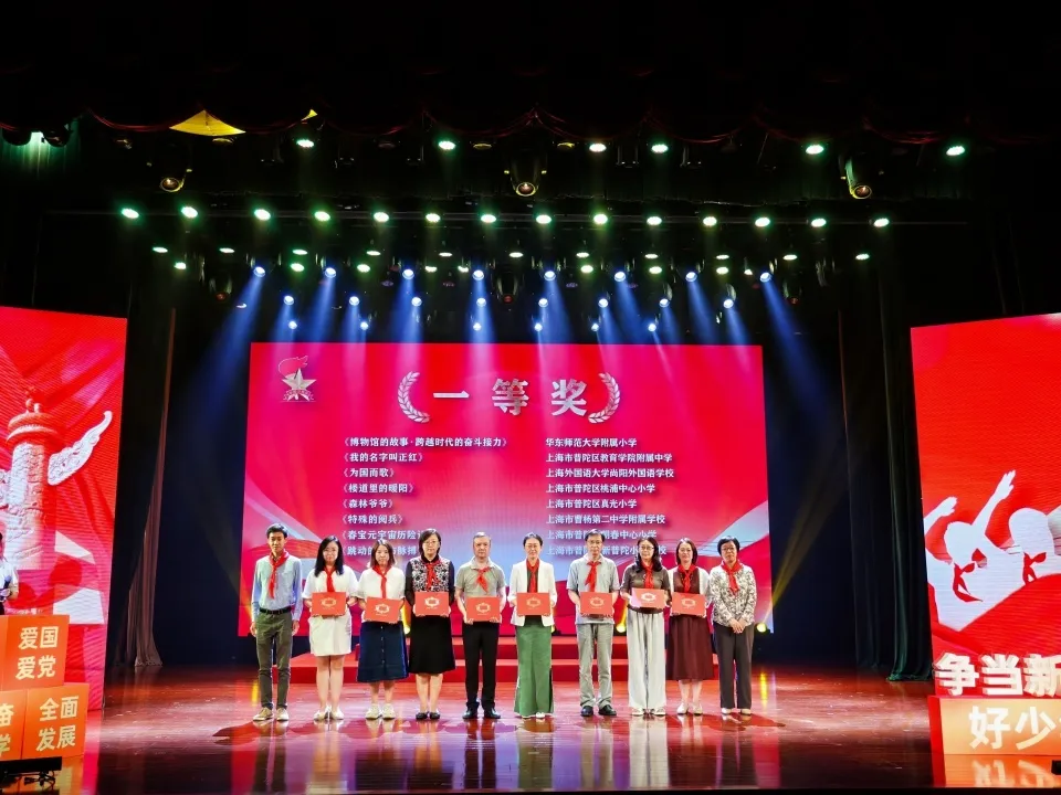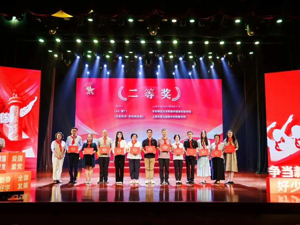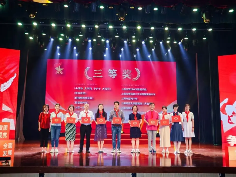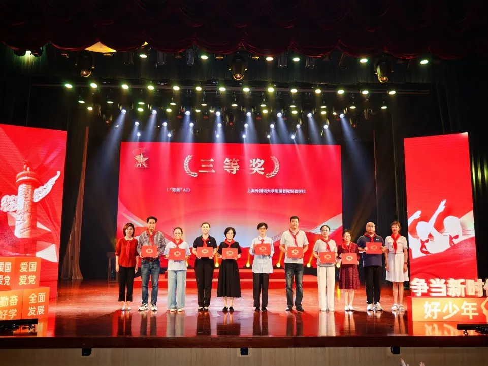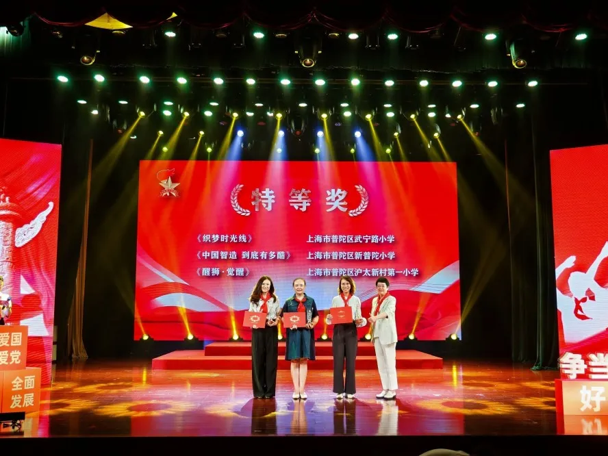 活动中,还分别为在2025少先队情景剧交流展示活动中获奖学校颁奖,表彰他们在情景剧创作与展演中的优异表现,充分体现普陀区少先队活动课程化、实践化、品牌化的建设成果。