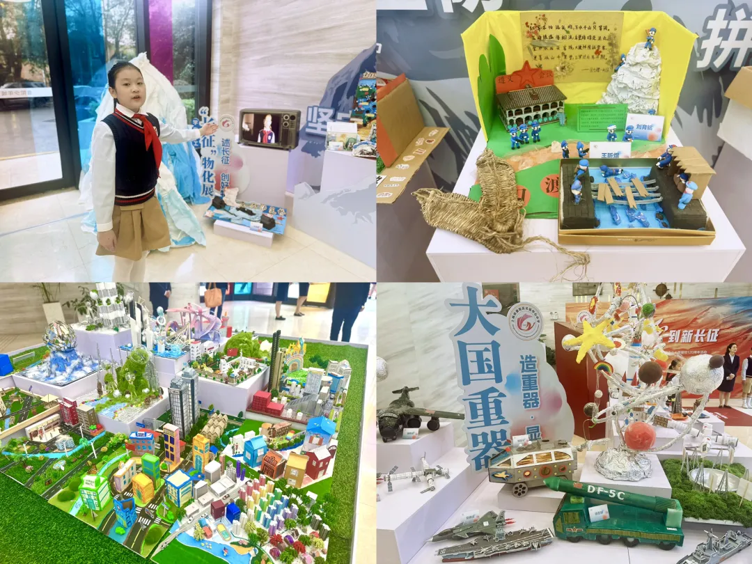 活动现场还举行了一场学生创意作品展。这里有学生用画笔勾勒出的英雄模样,有手工制作的长征场景模型,有集体合作完成的“15分钟幸福生活圈”社区立体图景……如何将长征精神融入学校日常的教育教学活动中,是学校一直在思考的。“学校将‘长征精神’融入综合实践活动课程中。经历过半个学期的学习,各年级学生用不同的物化成果来展示他们过程性学习的结果。”陆莉莉介绍道。