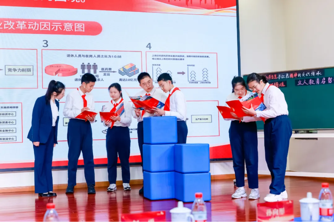 江宁学校巧妙将AI技术与心理健康教育相融合,展示了实景心理微课堂《AI绘心向未来 HI共筑家国梦》;晋元高级中学附属学校教师将红色历史与工匠精神交织,呈现了实景思政微课堂《勤劳智慧与红色精神的交织传承》,学子们更通过《暨南薪火传》项目化学习作业交流,真挚表达了对红色文化的理解与传承;晋元高级中学与晋元高级中学附属学校思政教师代表更是跨学段联手,开展《行走的思政课 探寻强国之路》集体备课展示,呈现区域推进跨学段协同备课的有效路径。