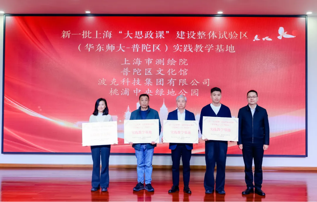 现场,与会领导为上海市测绘院、普陀区文化馆、TOP中央公园、波克科技集团有限公司4家新一批“大思政课”实践教学基地授牌,并为“苏河思政金课”获奖教师颁发荣誉证书。