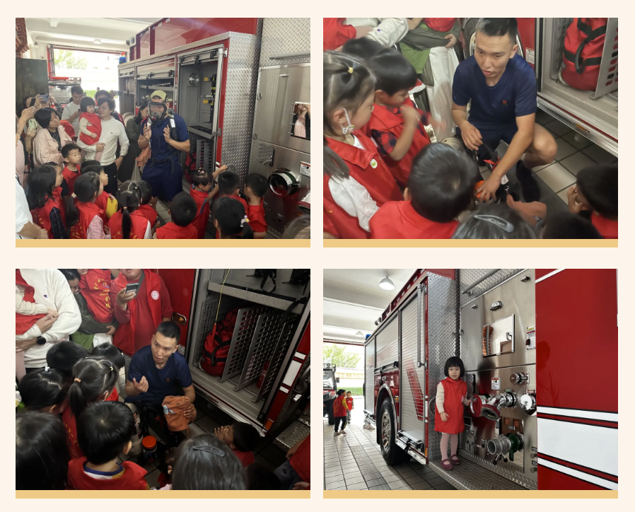 安全课堂结束后,孩子们在大人们与“教员”的帮助下,开始体验消防员的一日生活,先后了解消防车的内部结构与使用方法,观看滑杆速降、一对一手把手使用消防水枪,同时,在保障安全的情况下感受与体验消防用具,孩子们在短暂又充实的时光里,感受到了消防员的职业生活,对这份光荣的职业有了全新的认识与感悟。