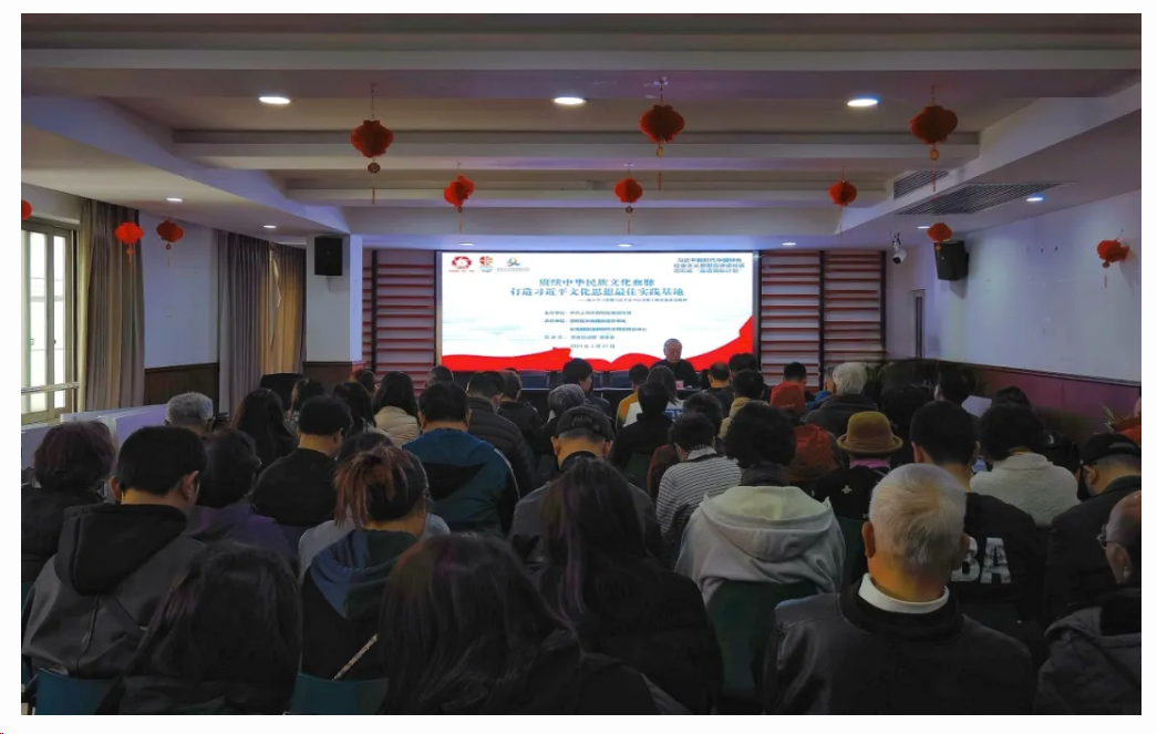 现场邀请了具有30年新闻工作经验的普老宣讲团优秀成员秦来来就“赓续中华民族文化血脉,打造习近平文化思想最佳实践基地”为主题进行了宣讲。此次活动吸引了包括13个居民区党总支书记、社区党员代表以及文明单位——中船勘院的青年党员代表在内的近70人参与聆听。