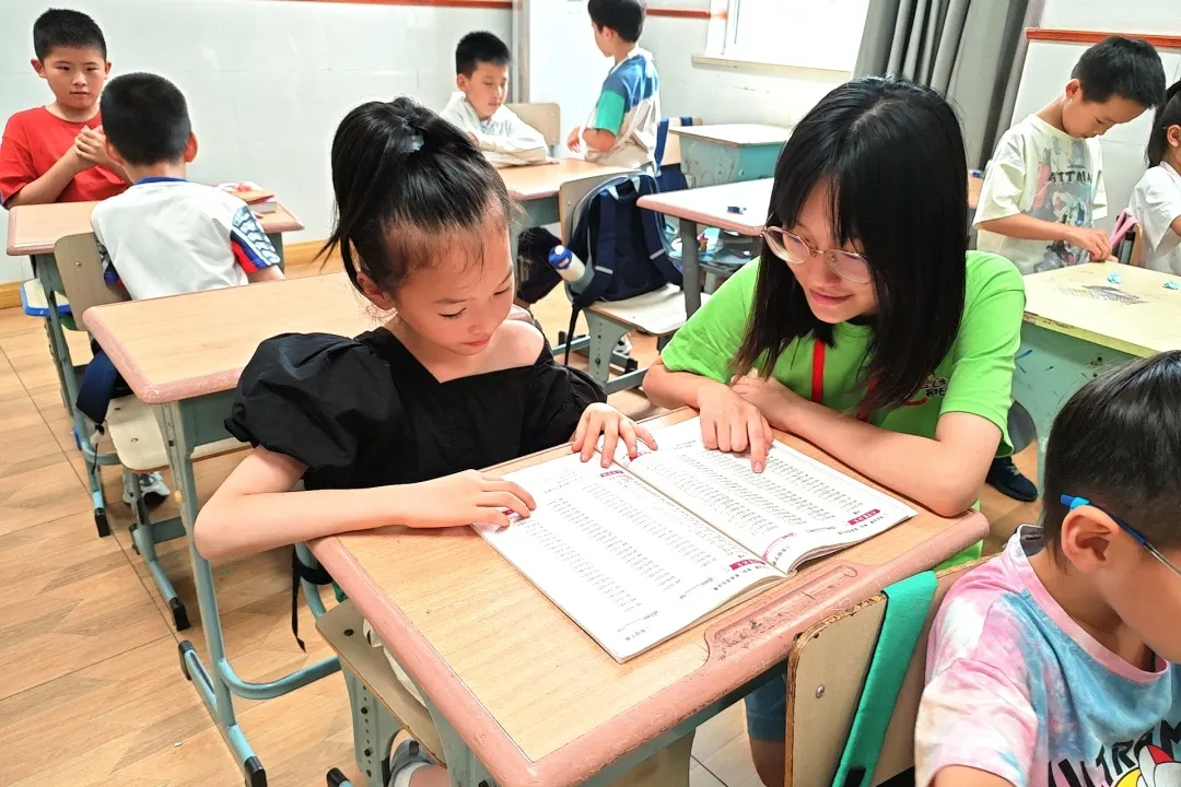 “重返熟悉的教室,身份已从学生变成志愿者,这种体验十分奇妙。看到孩子们专注学习的神情,仿佛看到了当年的自己。”高考结束后,董世文主动回到母校普教院附校,报名参加甘泉路街道爱心暑托班志愿服务。在她看来,暑托班不只是一个托管服务点,更是充满关爱与成长的大家庭。每次为小朋友解答难题、收到一句“谢谢姐姐”,她都感到无比满足和自豪。张辰是管弄新村小学的一名毕业生,正是对母校深厚的情感,让他在石泉路街道爱心暑托班的每一天都格外珍惜。“当我再次踏入母校,内心充满了温情。曾经是这里的一名学生,如今能用自己的力量帮助学弟学妹们,是一种特别的幸福。”董世文和张辰用自己的青春与热情,把感恩与陪伴变成温柔的循环。在他们的身上,校园的记忆与爱的传递,悄然实现了跨越时光的交接。