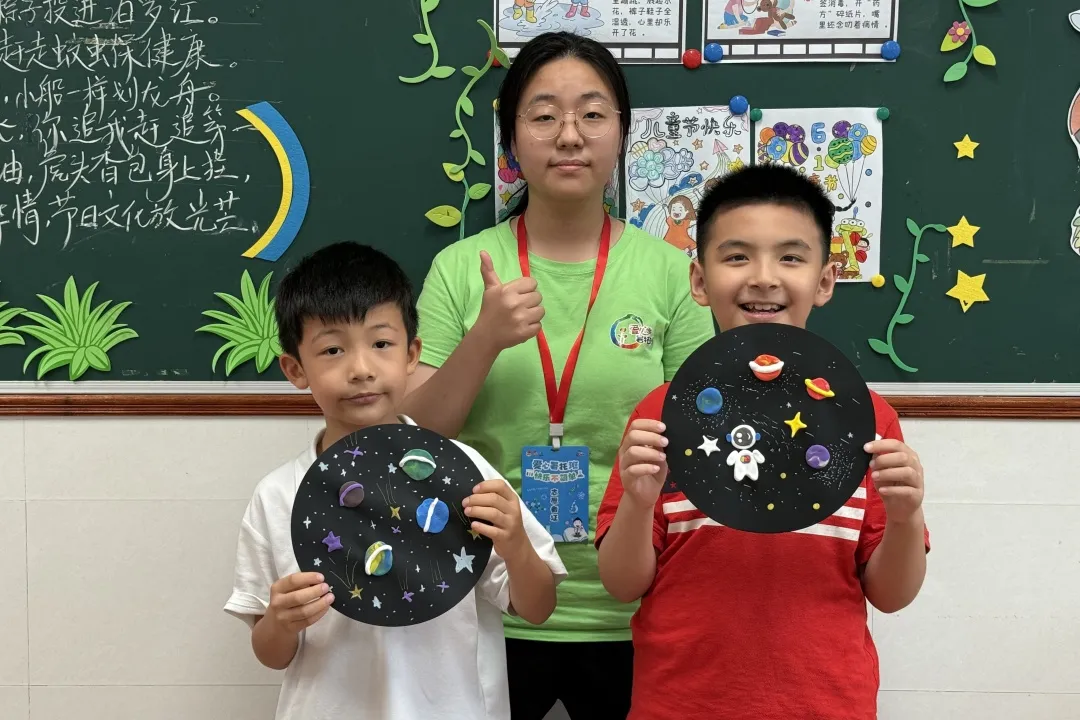 在普陀区的爱心暑托班里,还有许多志愿者用日复一日的陪伴和细致的守护,让孩子们的假期生活更加踏实与安心。桃浦镇爱心暑托班的王依婷,从高中毕业就投身暑托班志愿工作,一路从普通志愿者成长为志愿者团队负责人。她用自己的热情和耐心,陪伴孩子们一起游戏、做手工、解决小烦恼,见证了每一个童真的瞬间。万里街道爱心暑托班的杨馨怡,不仅协助老师开展课程,还用心参与每一项安全保障和活动细节管理。她说:“每当看到孩子们专注的眼神和开心的笑容,我觉得所有的辛苦和付出都是值得的。”宜川路街道爱心暑托班的全薇,连续担任志愿者团队负责人,带领团队服务小朋友,统筹安排各项活动,用实际行动激励着身边的每一位伙伴。